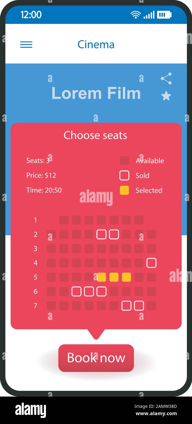 Movie Seats Booking Smartphone Interface Vector Template Mobile App Page Design Layout Cinema Concert Tickets Purchase Screen Flat Ui For Applic Stock Vector Image Art Alamy - Discover 13 movie ticket booking designs on dribbble.
